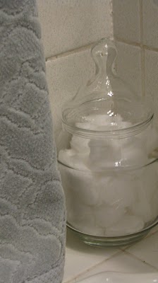 After the yard sale, I hit up a few antique stores and scored a few small things like this vintage apothecary jar to store cotton balls in the bathroom.